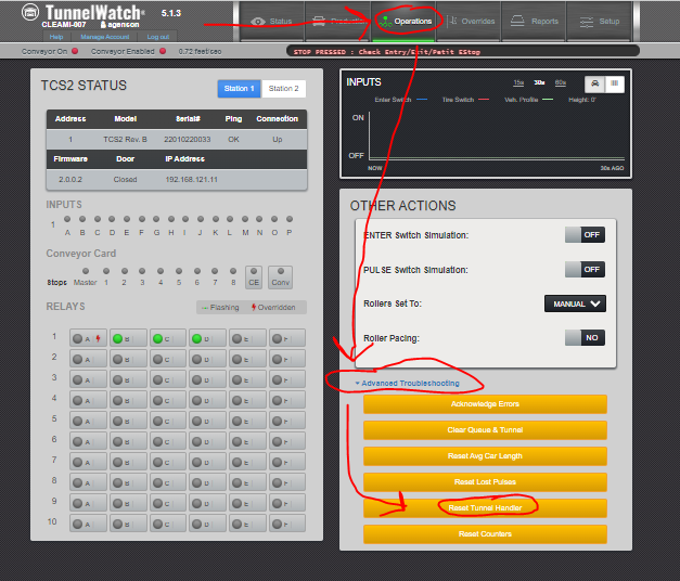 If this doesn't solve it, DRB's tech support number is 330-645-3299 They will ask for your location code. It is CLEAMI-007 and you can ask them to remote into your tunnel watch computer and troubleshoot the issue further.